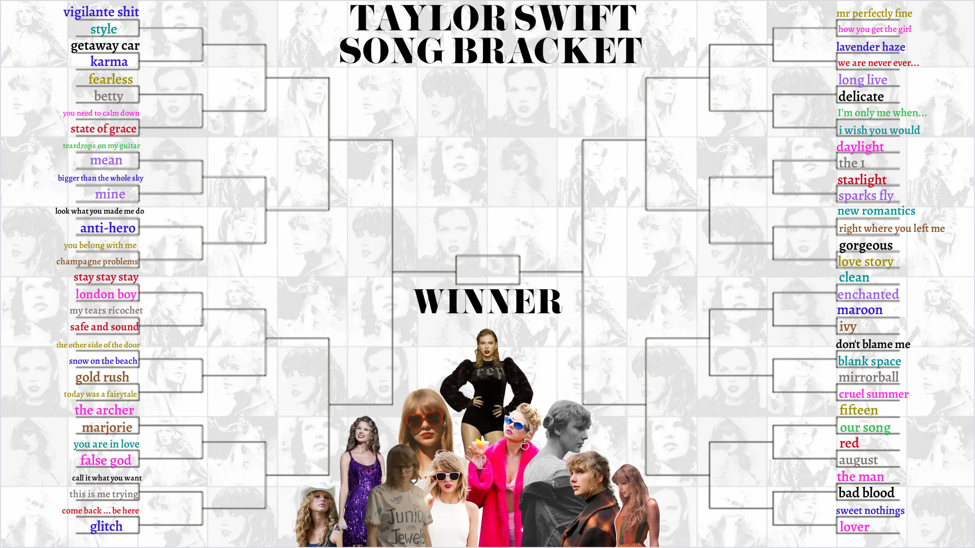 Landing Taylor Swift Song Bracket Template