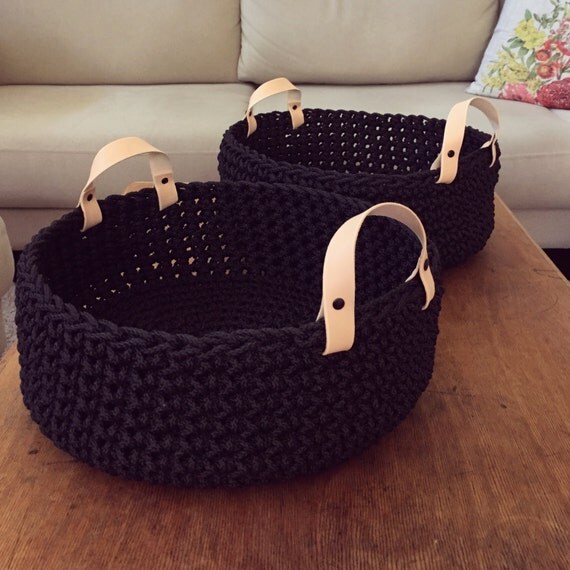Homewares, Chunky crochet rope basket with leather handles, crochet Small Rope Basket With Leather Handles cotton rope storage basket, cotton rope woven basket, storage basket with leather handle, small storage basket, cotton storage basket for. Use the leather hole punch to make a hole on either side of the leather strap. If you don’t have a leather hole punch, i used a utility knife to cut a small “x” in the leather. hanging. Small Rope Basket With Leather Handles.