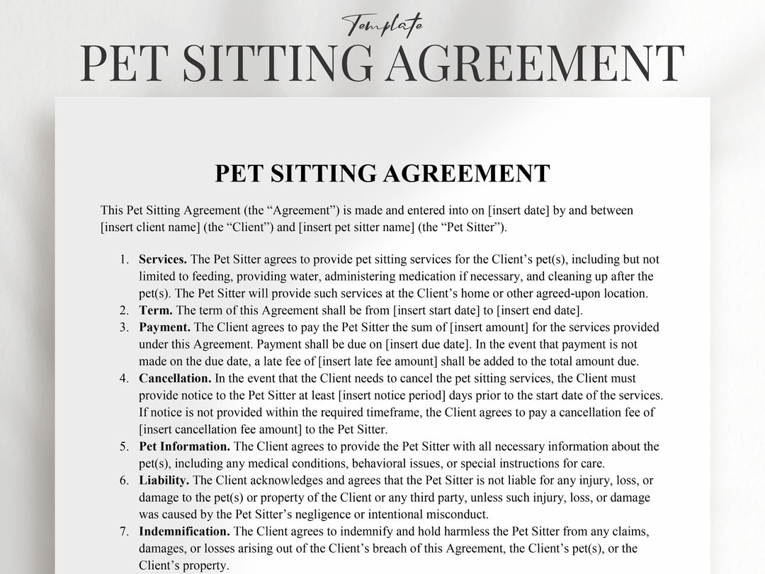 Pet Sitting Agreement PDF, Pet Sitting Contract, Pet Sitter Agreement