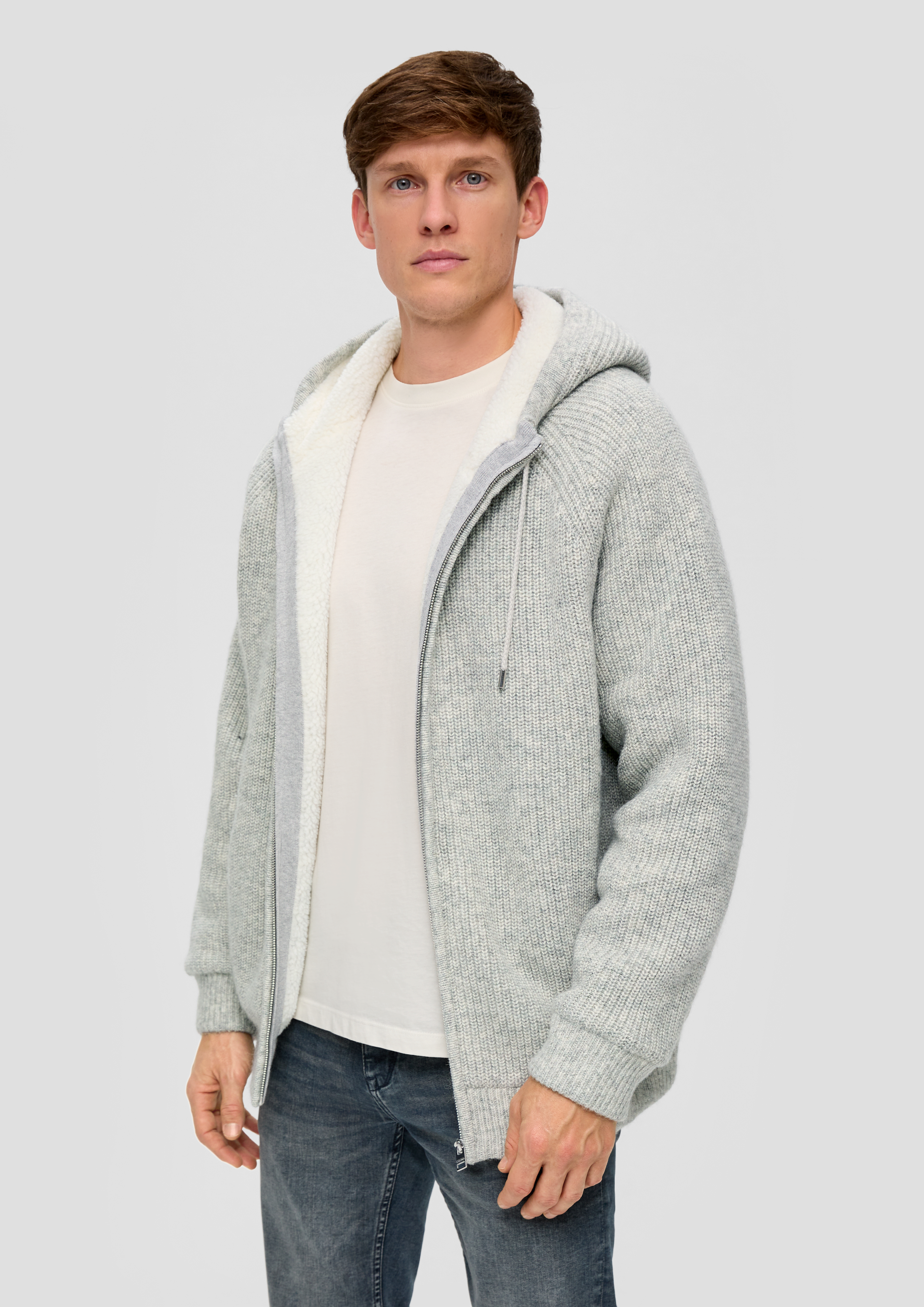 Fleece jacket with a hood grey melange s.Oliver