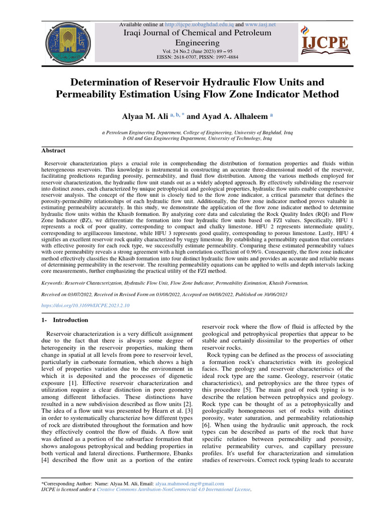 (PDF) A Novel Energy Lifting Approach Using JFunction and Flow Zone Flow Zone Indicator this page discusses single phase permeability models that are specifically based on the pore dimensions. flow zone indicator method. flow zone indicator (fzi), a crucial measure derived from pore throat size, permeability, and porosity, serves as. we were able to recognize seven different types of rocks (petrophysical static rock type 1 (psrt1) to psrt7). flow. Flow Zone Indicator.