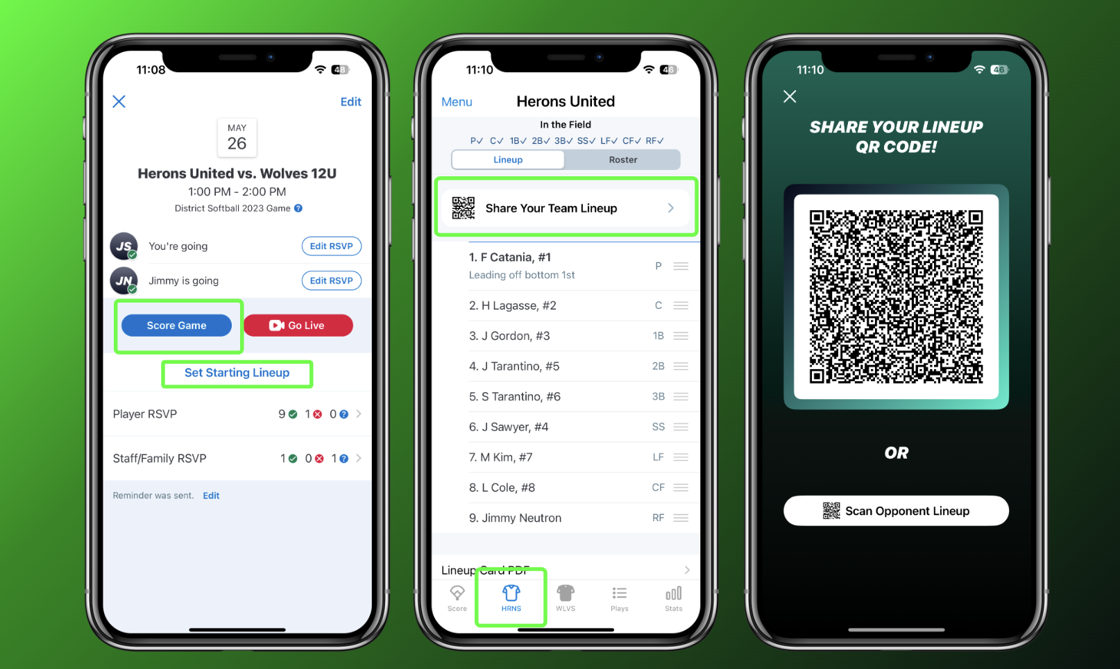 Share Starting Lineups for Baseball & Softball GameChanger