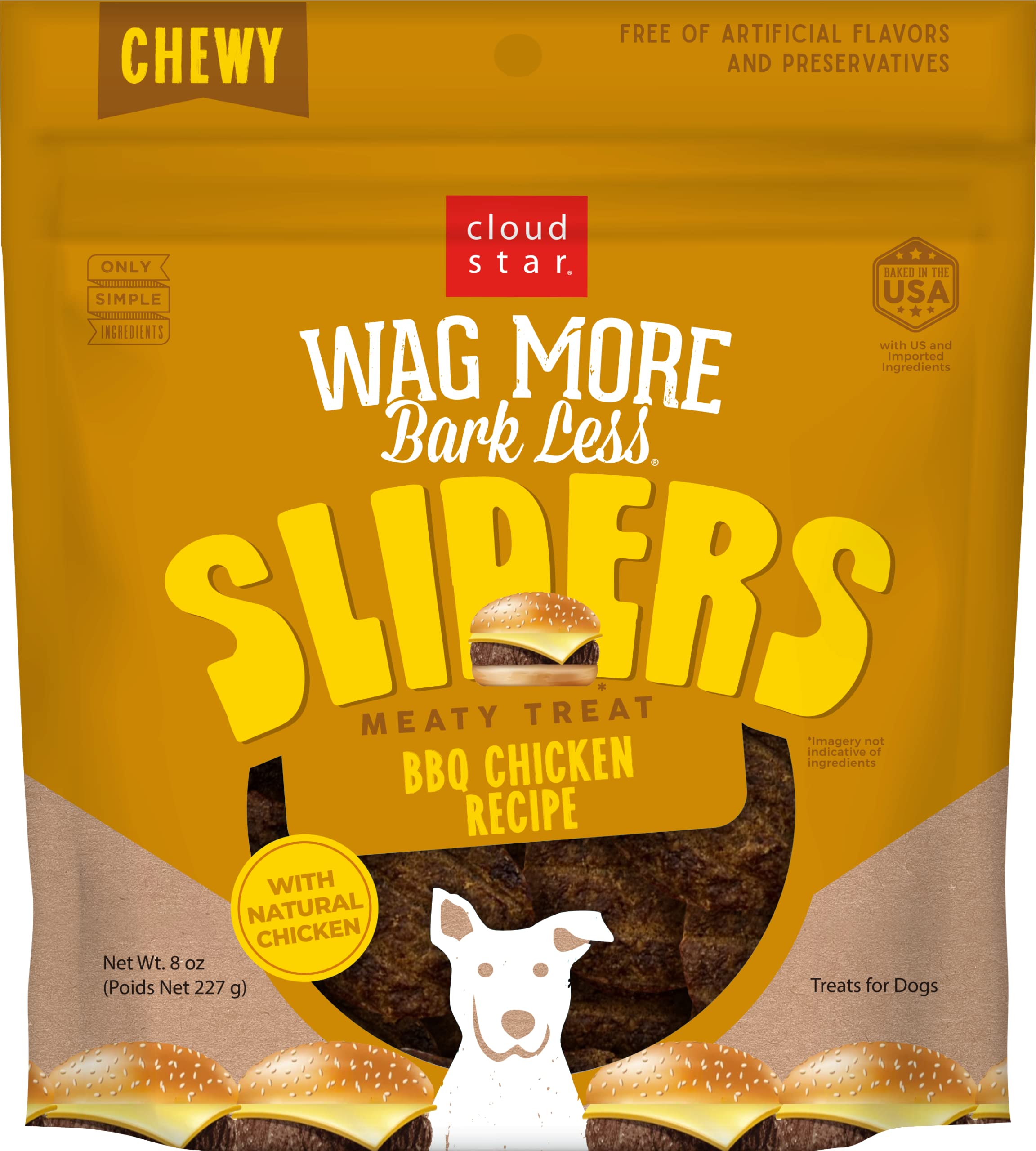 Cloud Star Wag More STF9 Bark Less Sliders Dog Treats, BBQ Chicken 8 oz