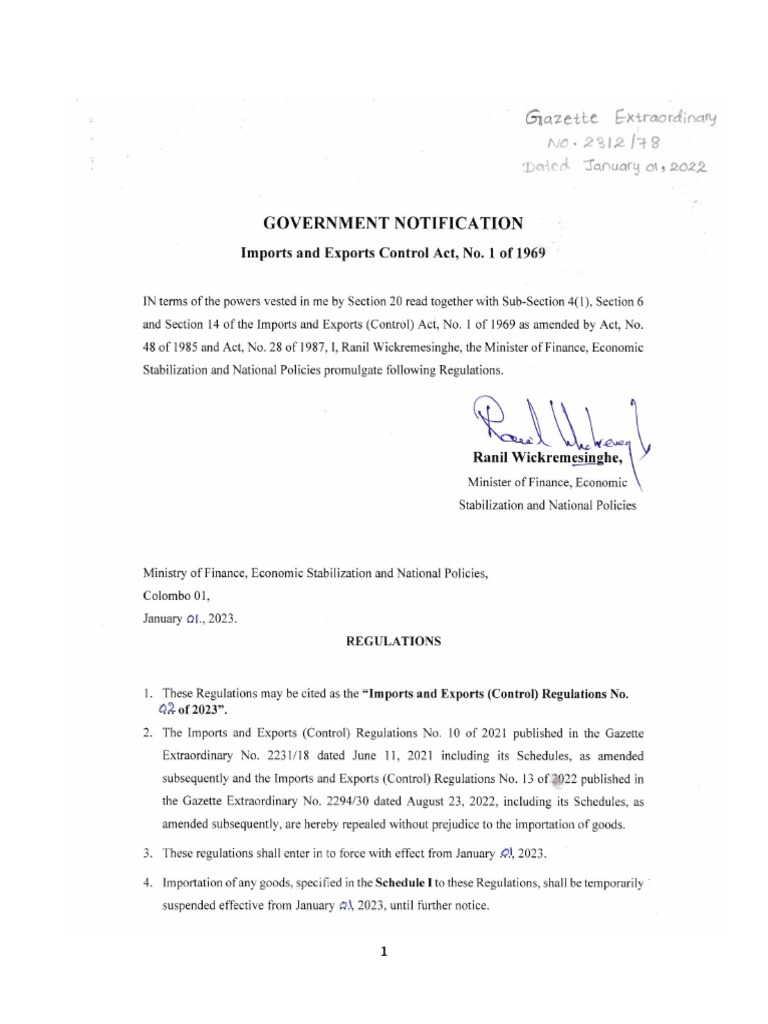 Government Notification Imports and Exports Control Act, No. 1 of 1969