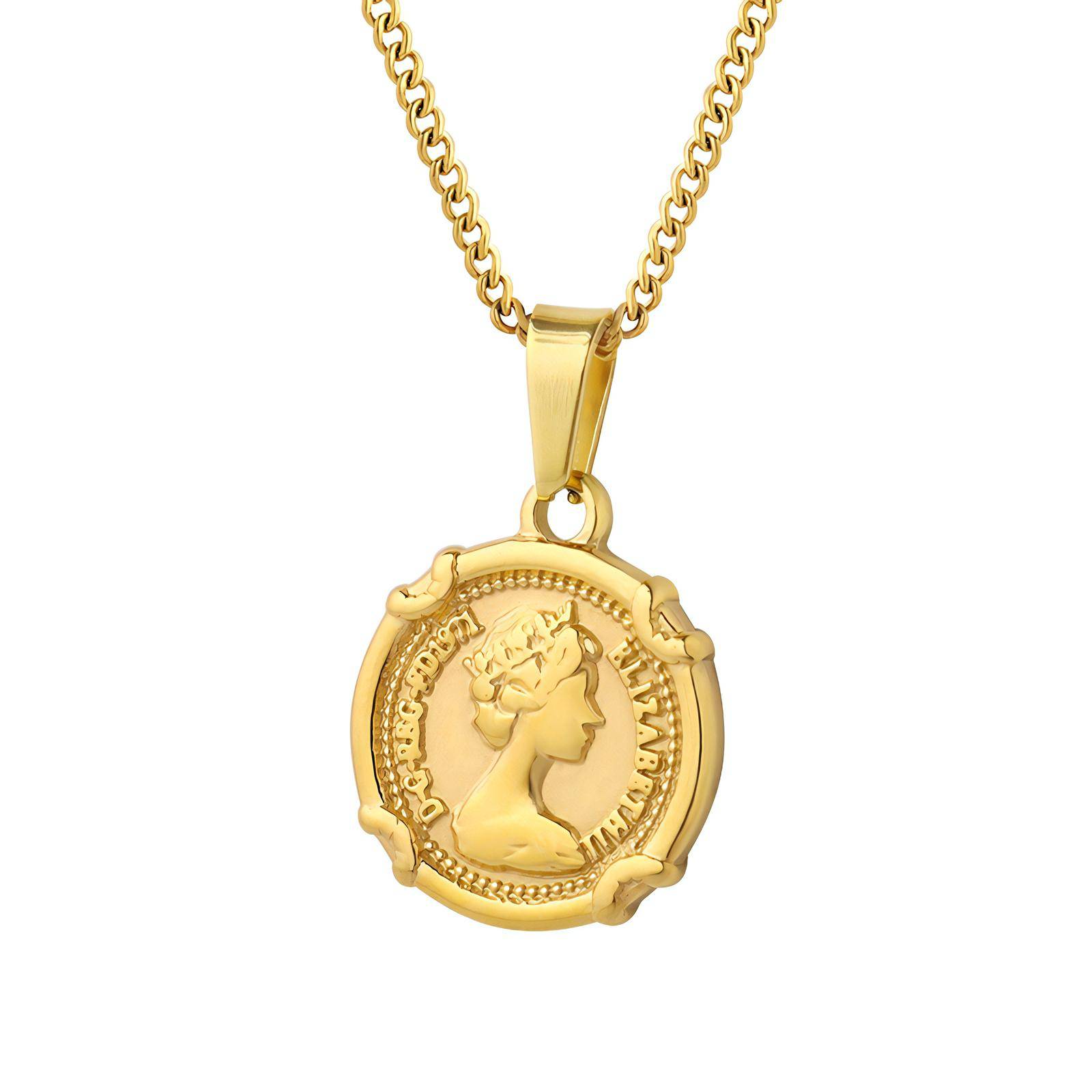 18K gold plated Stainless steel "Queen coin" necklace, Intensity SKU Queen Coin Necklace Featuring intricately designed coin charms and a toggle clasp, it. Check out our queen elizabeth coin necklace selection for the very best in unique or custom, handmade pieces from our necklaces shops. The susan shaw gold coin toggle necklace epitomizes vintage allure. Her majesty lived a life of service, putting country and duty before. Queen elizabeth coin dainty necklace. In. Queen Coin Necklace.