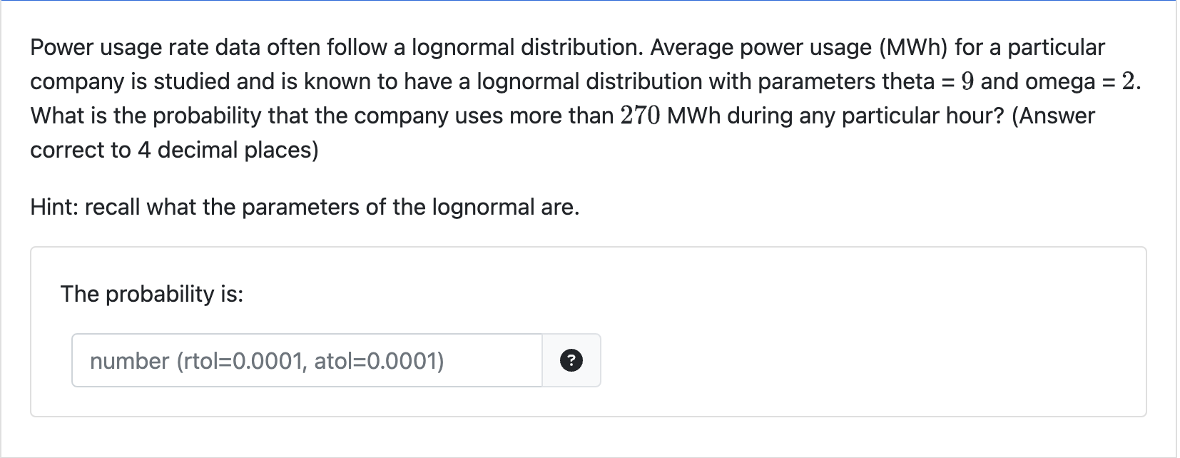 Solved Power usage rate data often follow a lognormal