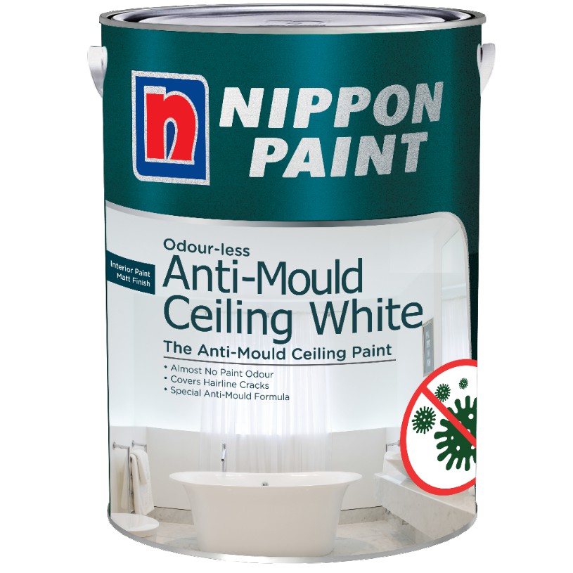 Nippon Paint Anti Mould Low Odour Ceiling White Emulsion Paint 5L *Free