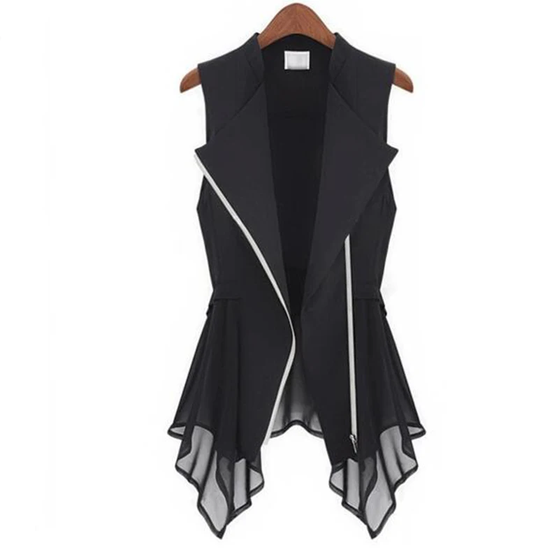 Women Vest black female 2018 summer new fashion Slim zipper chiffon