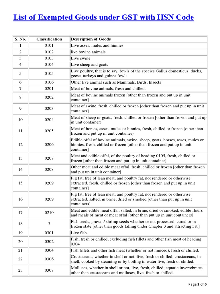Exempted Goods under GST A Comprehensive List of Livestock, Agriculture and Food Items with HSN
