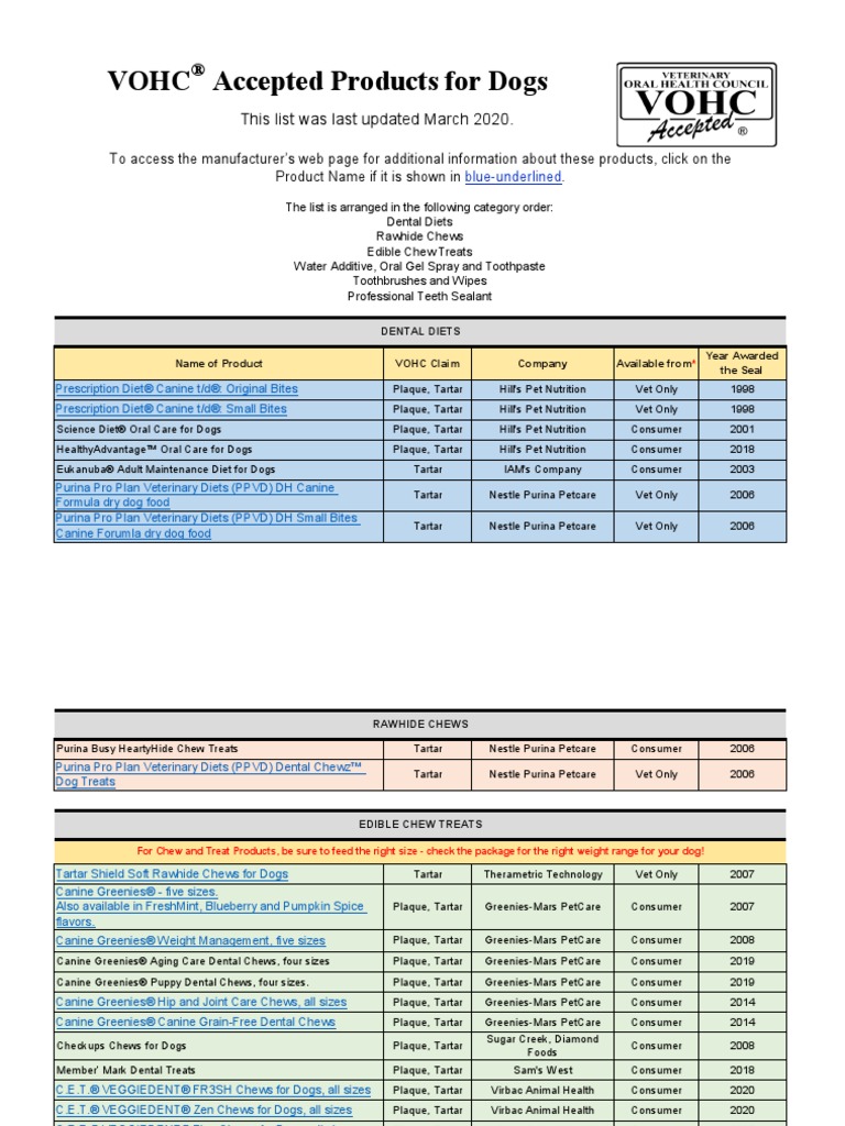 Vohc Accepted Products For Dogs This List Was Last Updated March 2020