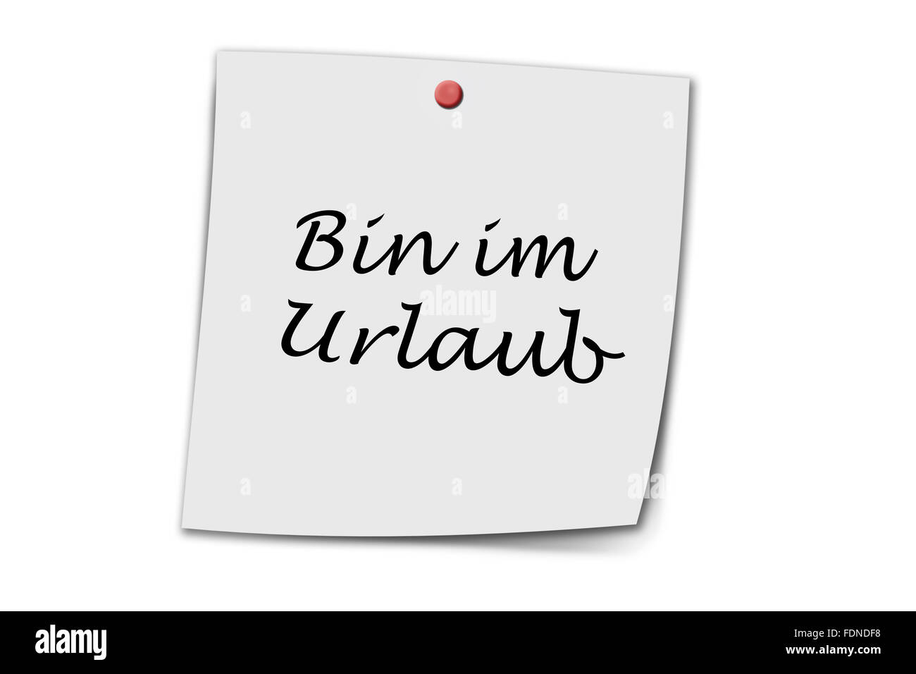 Bin im Urlaub (German on vacation) written on a memo isolated on white