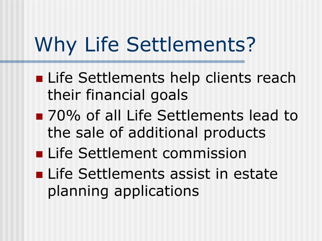PPT Why Life Settlements? PowerPoint Presentation, free download ID Which Is Not True Of Life Settlements Study with quizlet and memorize flashcards containing terms like which of the following is not true of life settlements?, who can make a. Which of the following is not true of life settlements ? They could be used for a key person coverage. They could be sold for an. As of this writing, direct fractional life settlements are not available. Which Is Not True Of Life Settlements.