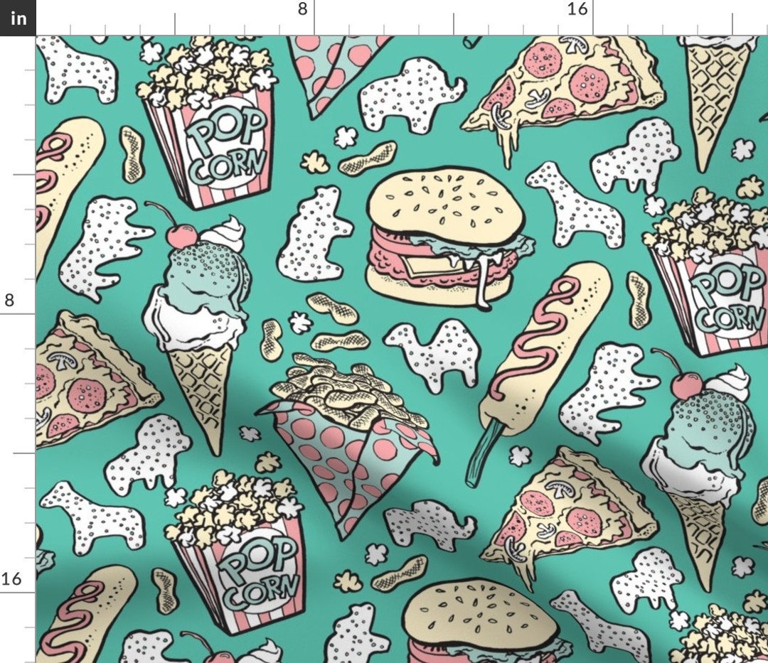 Food Fabric Food Circus in Mint by Pinkowlet Circus Food Popcorn Animal