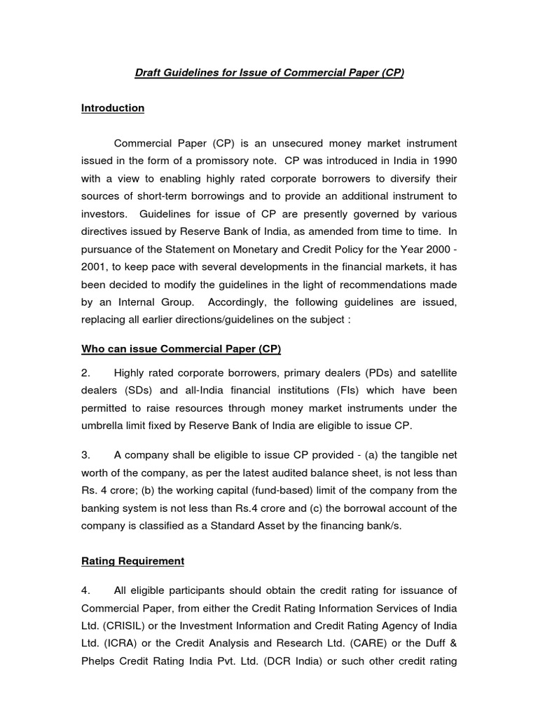 Fillable Online Draft Guidelines for Issue of Commercial Paper (CP) Fax List Of Commercial Paper Issued In India commercial paper issued : securities and exchange board of india has issued circular dated october 22, 2019 for the issuers who intend to list their. Trend & growth of cp market in india. status paper on commercial paper (cp) market in india pursuant to the recommendations of the committee to. commercial paper (cp), an unsecured money. List Of Commercial Paper Issued In India.