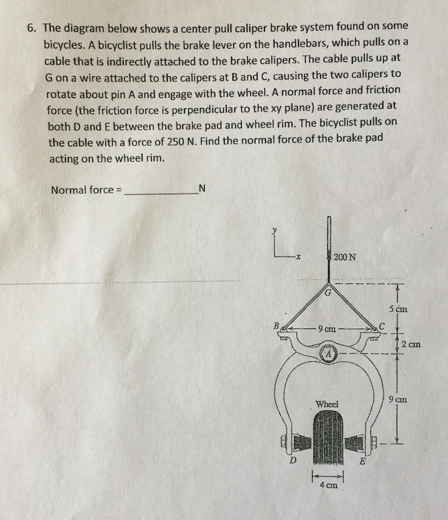 Solved 6. The diagram below shows a center pull caliper Brake Caliper Force Calculation Brake caliper clamping force calculator: Learn about caliper clamping force and the balance between friction, piston size, and pedal feel for optimal braking performance. Newton’s third law state every force has an equal and opposite reaction and a reaction force. This calculator offers a simple yet powerful tool for professionals and enthusiasts to estimate the clamping force exerted by brake. Brake Caliper Force Calculation.