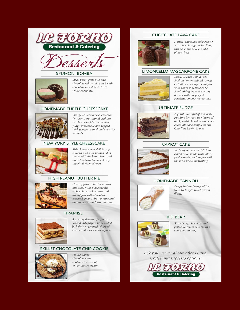 Il Forno Lunenburg Ma 01462 Dessert Menu