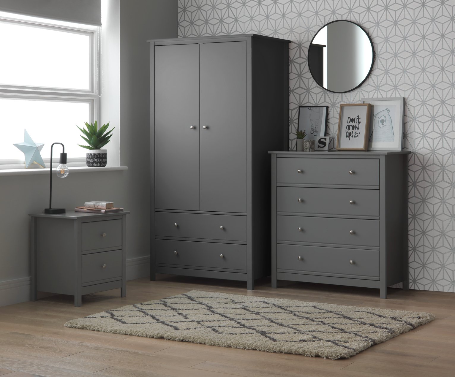Habitat Kids Brooklyn 3 Piece 2 Door Tall Wardrobe Set Grey (8521835