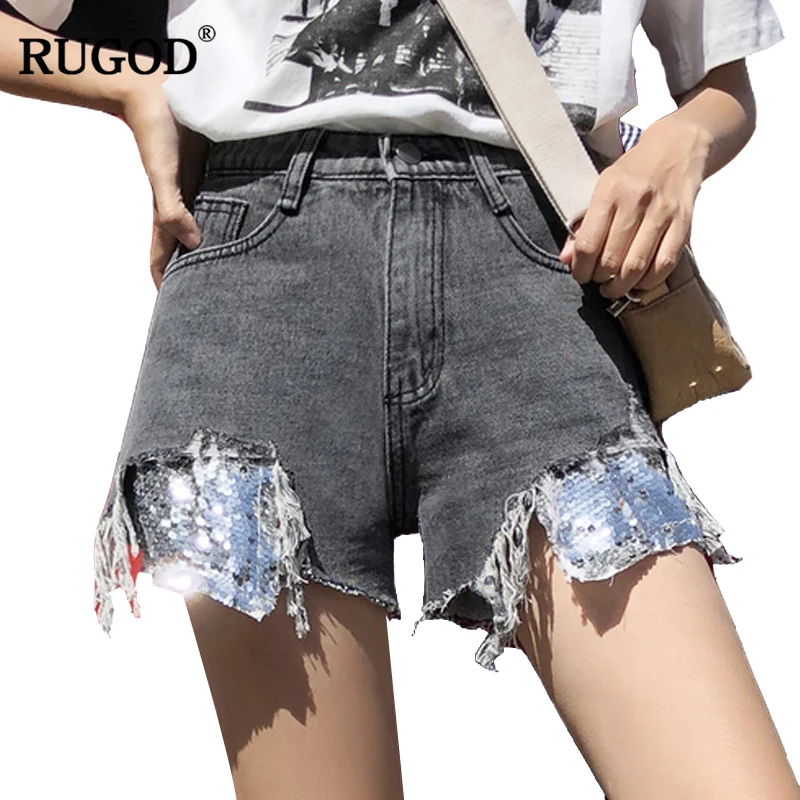 RUGOD Fashion Patchwork Sequins Tassel Jean Shorts 2018 Summer Casual Pocket Frayed Fringe