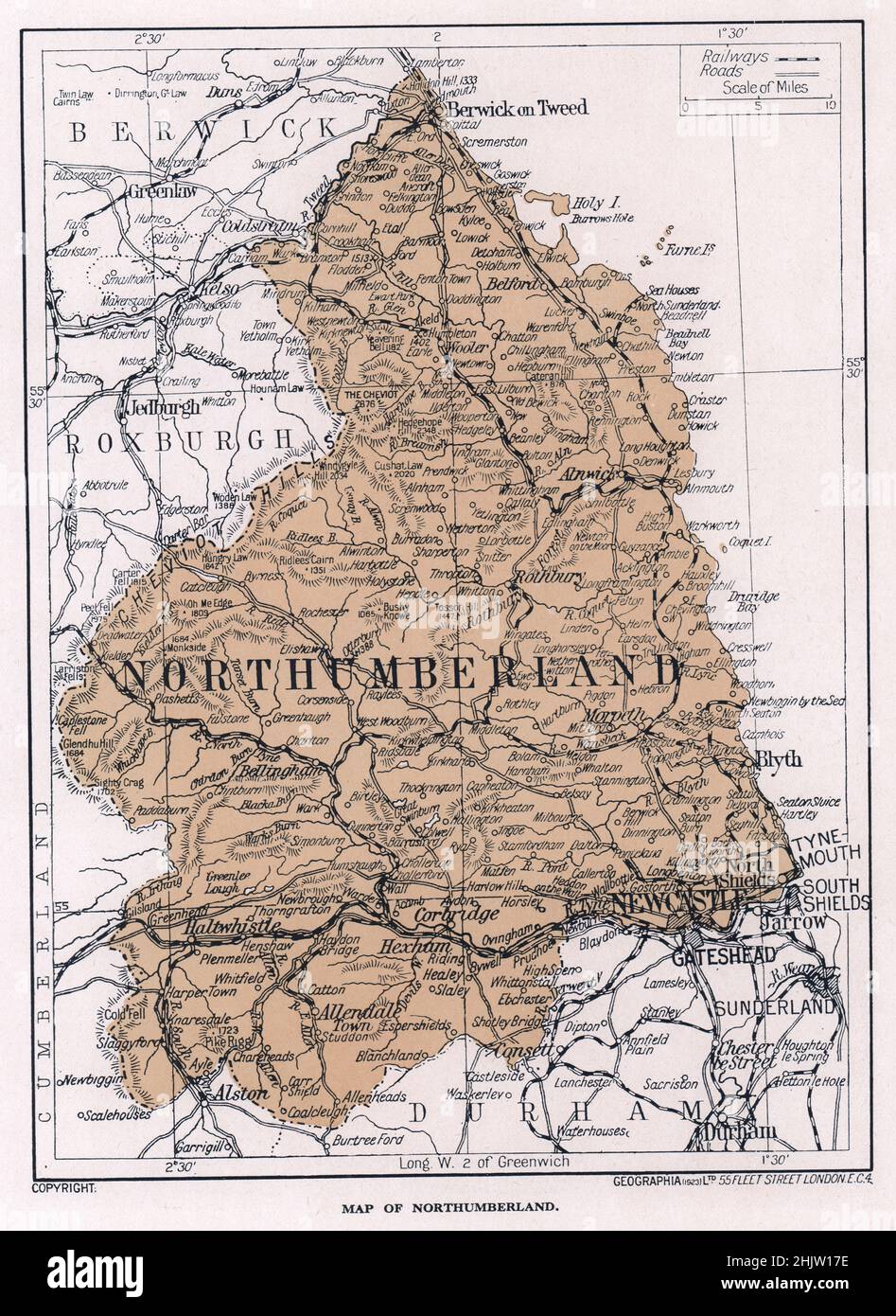 Map of Northumberland (1913 Stock Photo Alamy