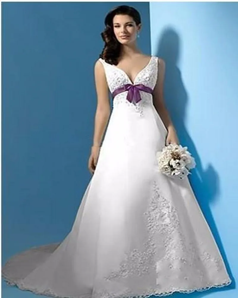 Best Selling Wedding Dress White Purple V Neck Empire Waist Beads