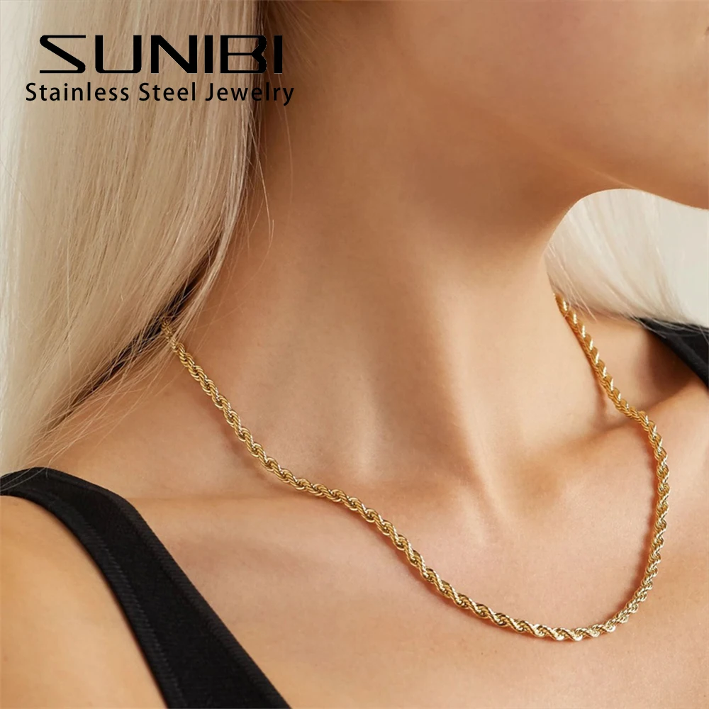 Sunibi Twisted Chain Necklaces Women Gold Silver Color 3mm/4mm