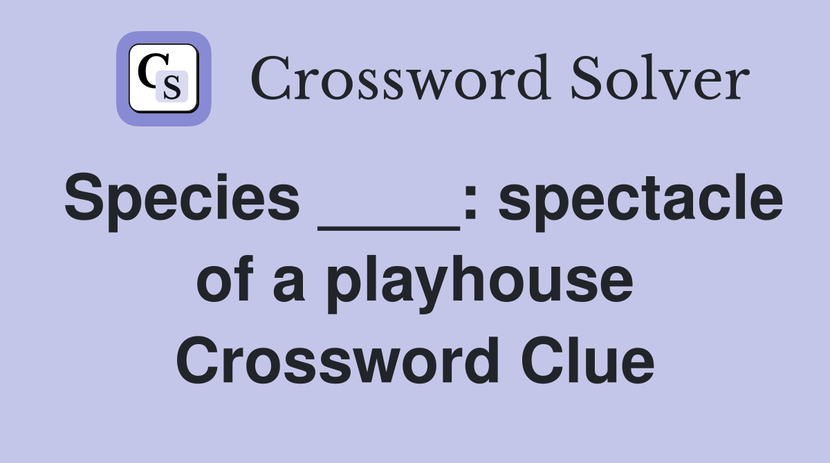 Species ____ spectacle of a playhouse Crossword Clue Answers