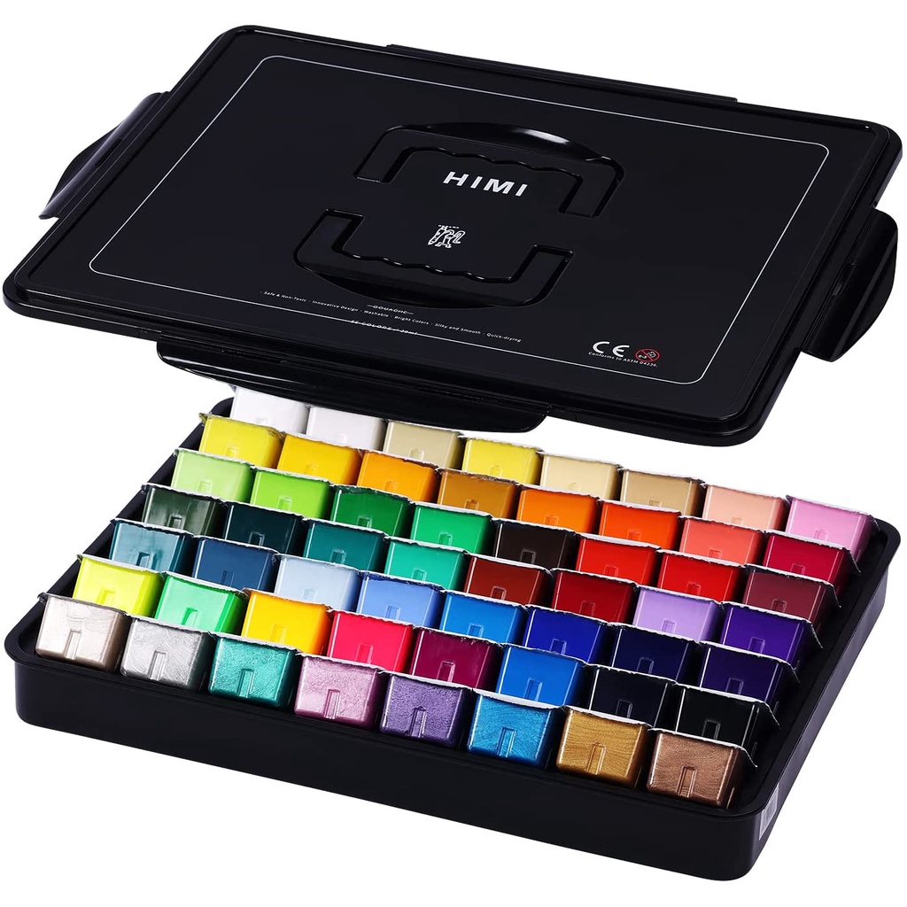 HIMI Gouache Paint Set, 56 Colors x 30ml Include 8 Metallic and 6 Neon Jelly Gouache Paint (56 Colors) Himi 56 colors gouache paint set. Himi gouache paint set, 56 colors x. Jelly gouache paint (56 colors) + calm day of painting. The paint will not crack or crumble. Each color has 30 ml of large content. Thoovi himi gouache paint set, 56 colours, 30 ml jelly cups, with palette, non toxic paint for paper, canvas and professionals, multicolour.. Jelly Gouache Paint (56 Colors).