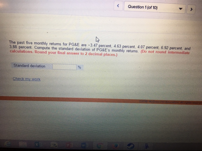 Solved The past five monthly returns for PG&E are 3.47