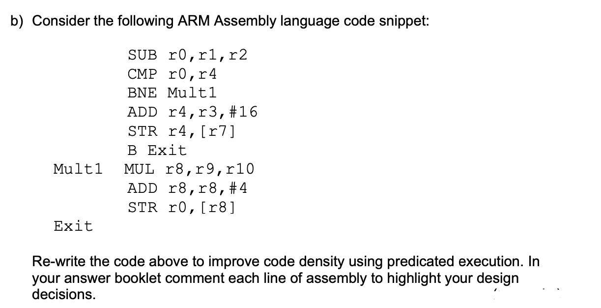 Solved b) Consider the following ARM Assembly language code