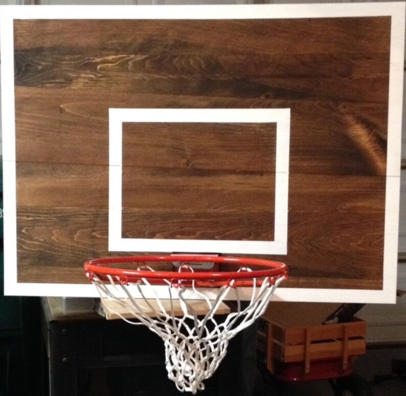 Traditional Basketball Hoop. Wood Basketball Hoop With Painted Etsy Basketball Wood Backboard Not only is it beautiful and perfect for a boy's room, or perhaps a man cave or rec room, it actually works! Aside from having a great appearance, a wood backboard is lightweight, stylish, and inexpensive. Even so, wooden backboards are not recommended for outdoor use as they cannot withstand rain or excessive sunlight for too long. Acrylic is the. Basketball Wood Backboard.