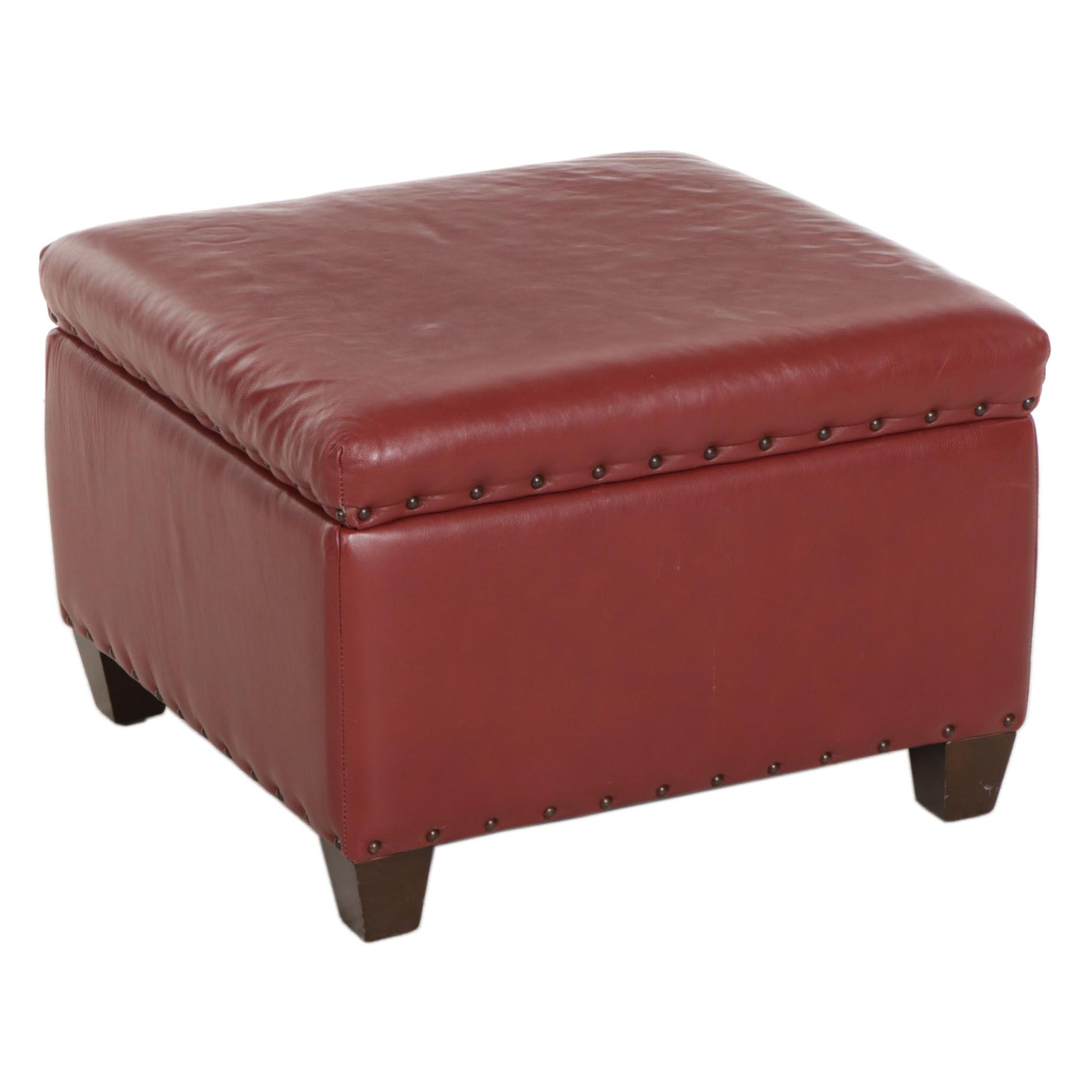 King Hickory Leather Upholstered Storage Ottoman, 21st Century EBTH