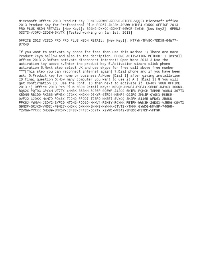 Microsoft Office 2013 Product Key PDF Microsoft Office 2013