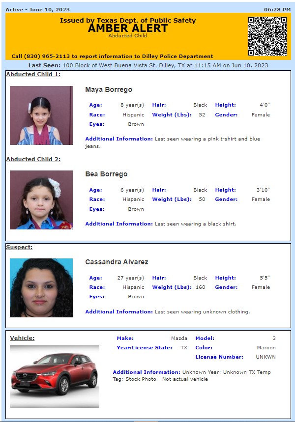Texas Alerts on Twitter "ACTIVE AMBER ALERT for Bea and Maya Borrego