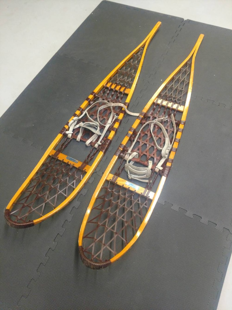 Vintage Snocraft Snowshoes Made in 1960'S in Norway Maine Etsy Snowshoes Made In Maine Offering modified bearpaw & maine snowshoes, leather. It is great for backing up in the trail, and also. purchase authentic wooden snowshoes from coos canoe & snowshoe; buy or rent traditional wooden snowshoes made in maine from white ash with lacing materials. Fluffy, sticky, soft, or icy — pleasant ridge plantation’s bob howe has a snowshoe for that.. Snowshoes Made In Maine.