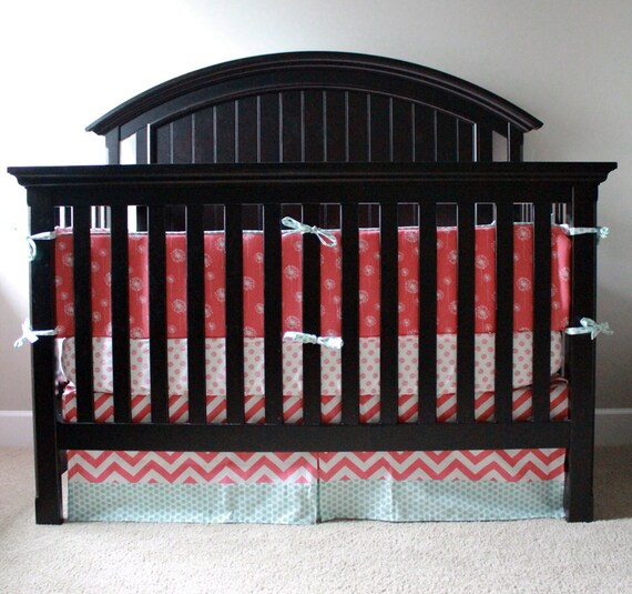 Custom Crib bedding Coral and Aqua Baby Bedding by GiggleSixBaby