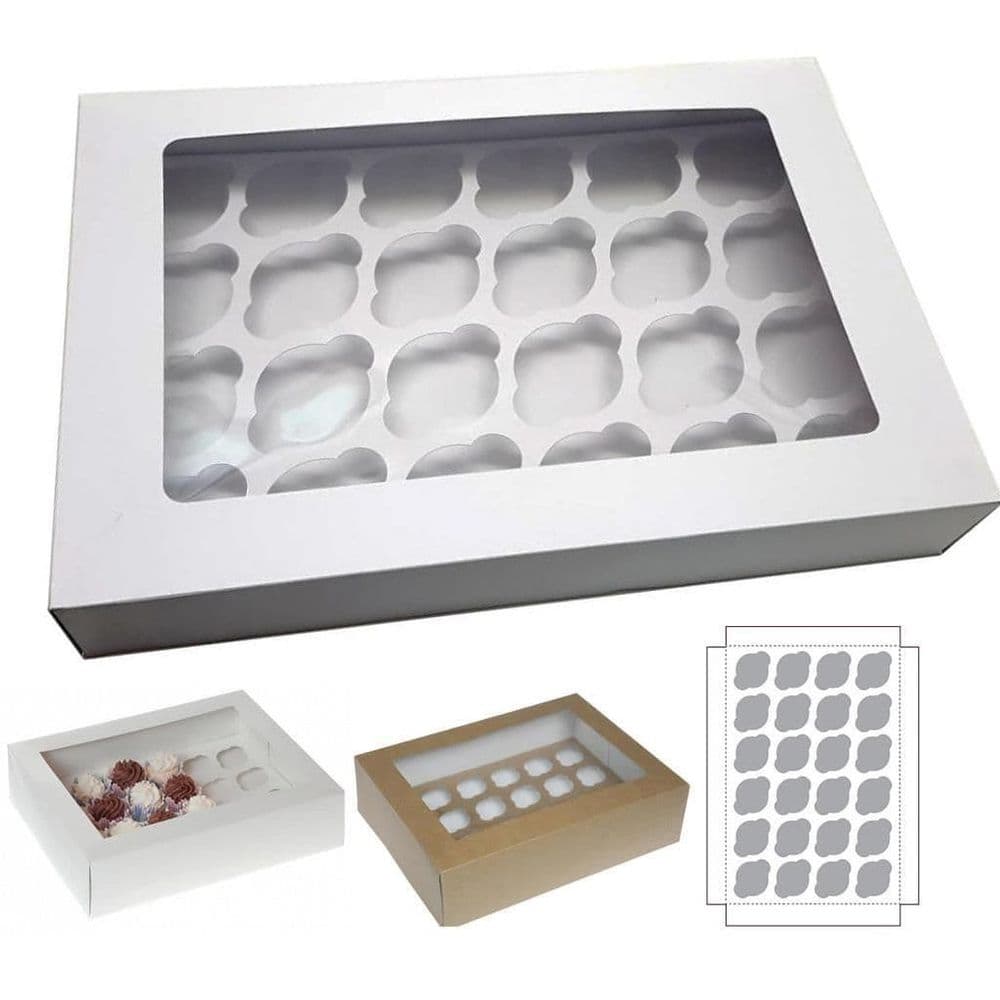 EXTRA LARGE CUPCAKE BOXES FOR 24 CUP CAKES MUFFINS HEAVY DUTY WHITE BROWN