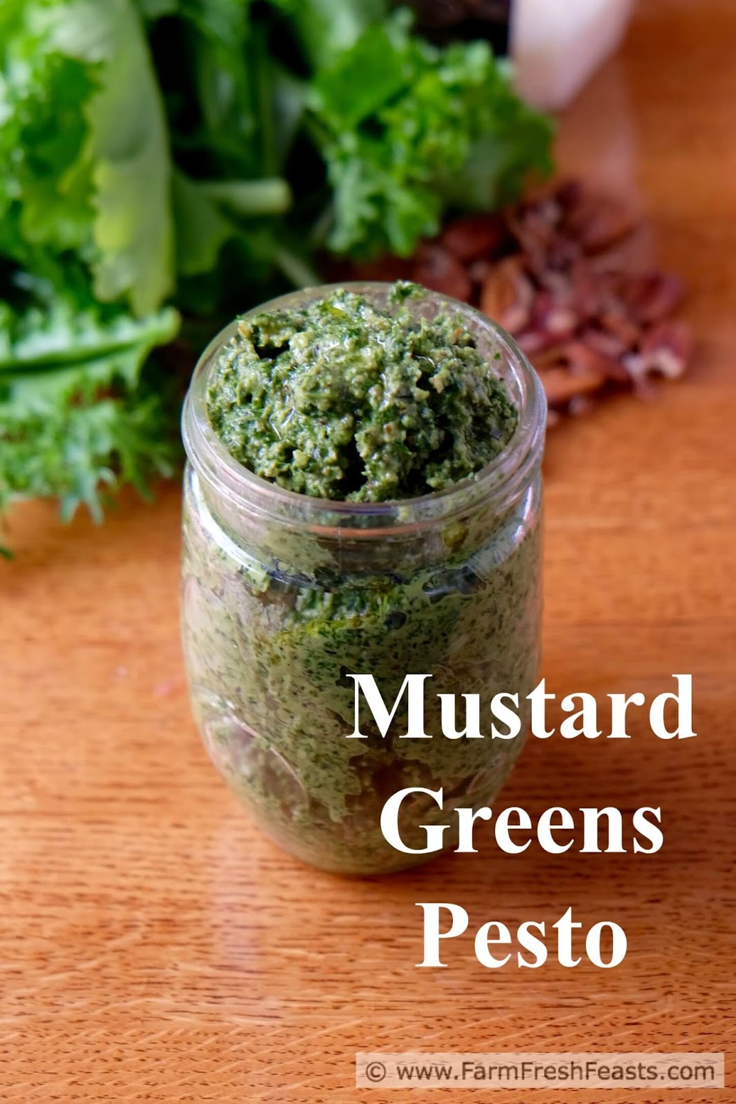 Farm Fresh Feasts Mustard Greens Pesto with Pecans and Asiago