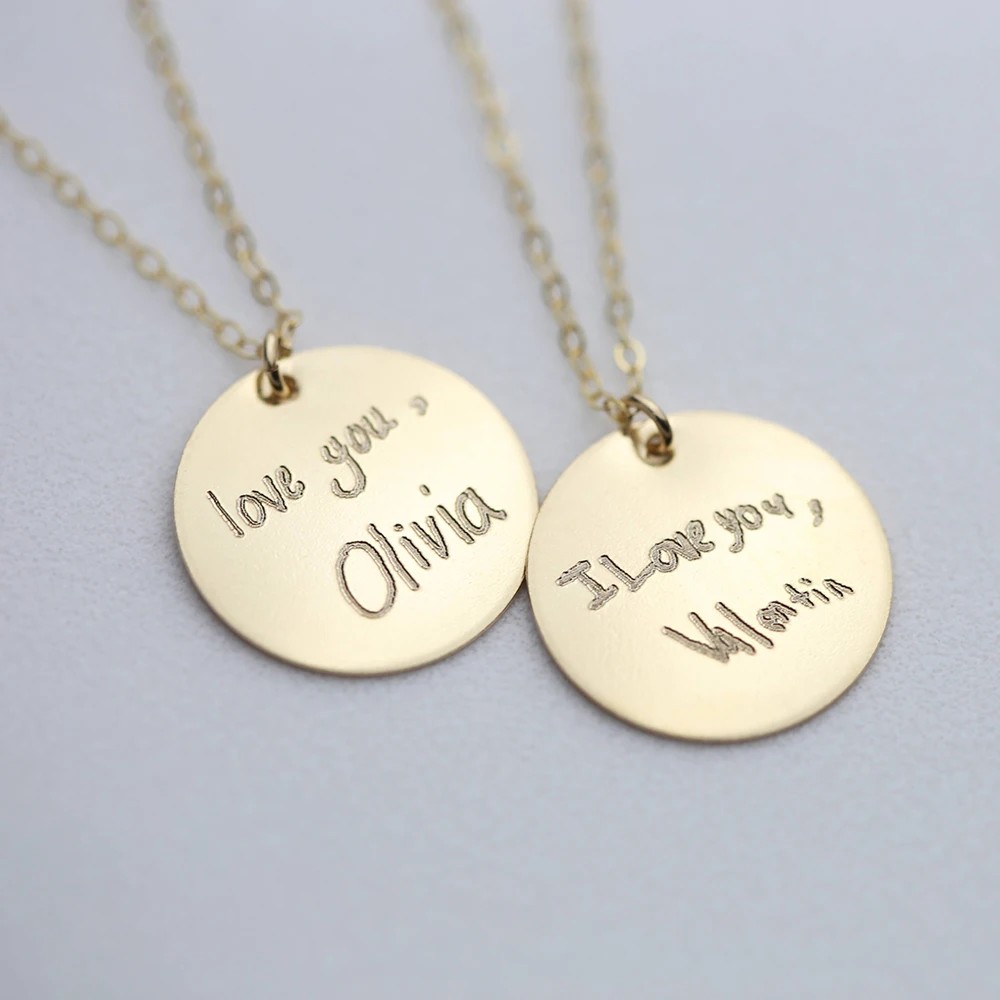 Gold Disc Handwriting Necklace Sincerely Silver Handwriting Necklace Gold Choose from yellow gold, rose gold or. what if you could keep some of your most precious memories in silver or gold? this 14k gold handwriting necklace is crafted to feature meaningful handwriting. Now you can with our handwriting and artwork necklaces. Simply upload a photo of. we have a variety of materials available for your signatures. Handwriting Necklace Gold.