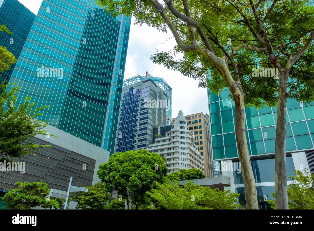 Singapore. Modern office skyscrapers and green trees Stock Photo Alamy