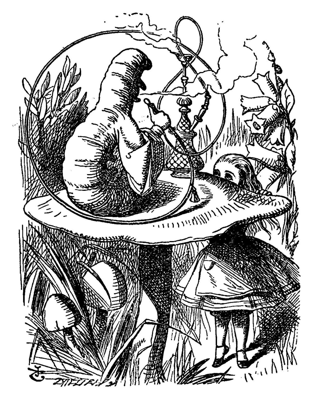 Vintage Ephemera Book illustration, "the Caterpillar," Alice's