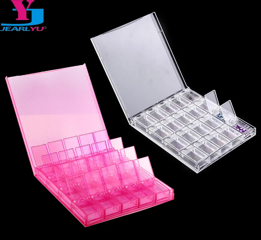 New Design 20 Slots Nail Storage Box Empty Acrylic Rectangle Pink Clear