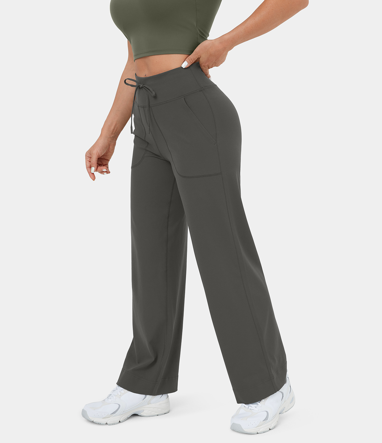 Women’s High Waisted Drawstring Side Pocket Straight Leg Yoga Pants