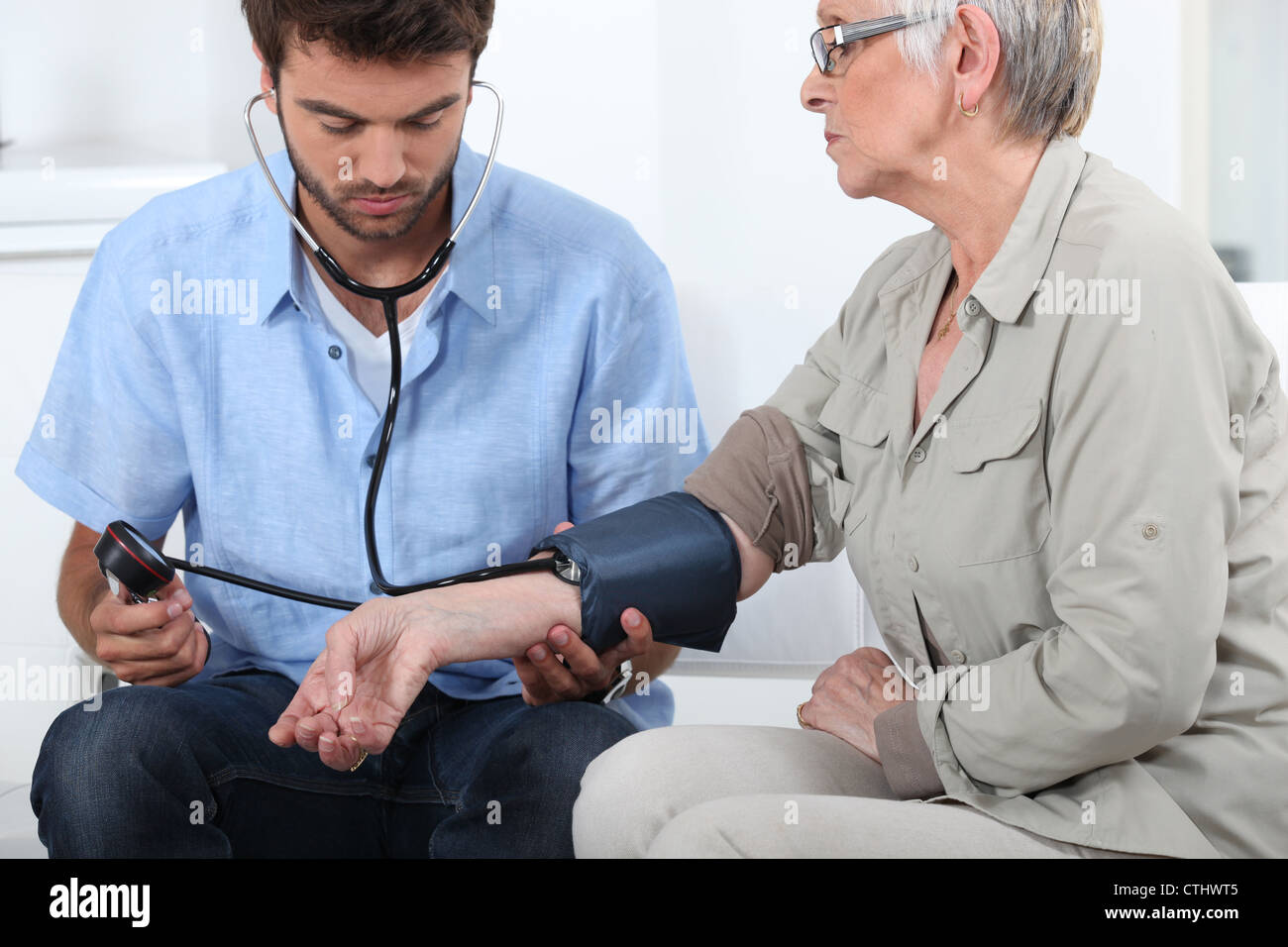Doctor taking the blood pressure Stock Photo Alamy