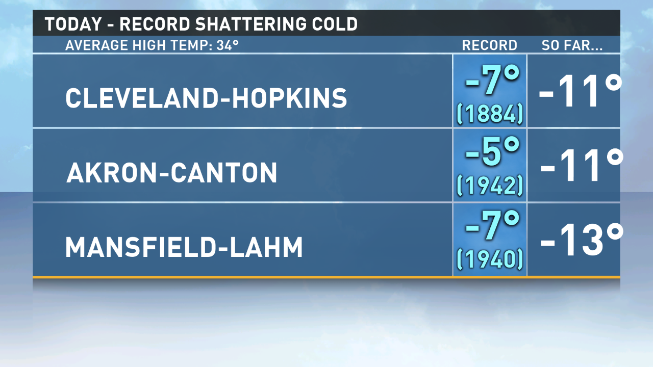 Northeast Ohio cities set record low temperatures