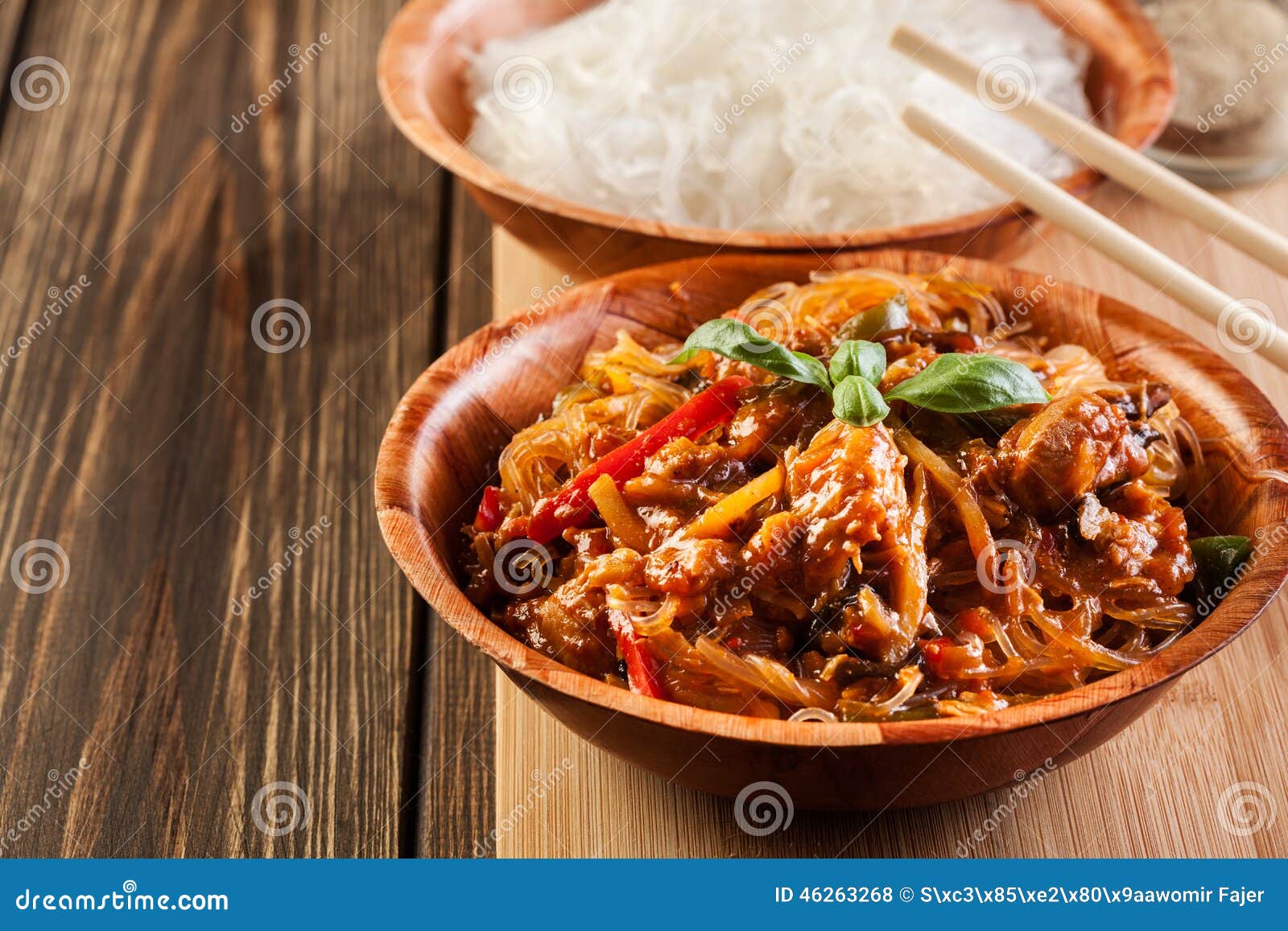 Chinese Chicken with Rice Noodles Stock Photo Image of board, chinese