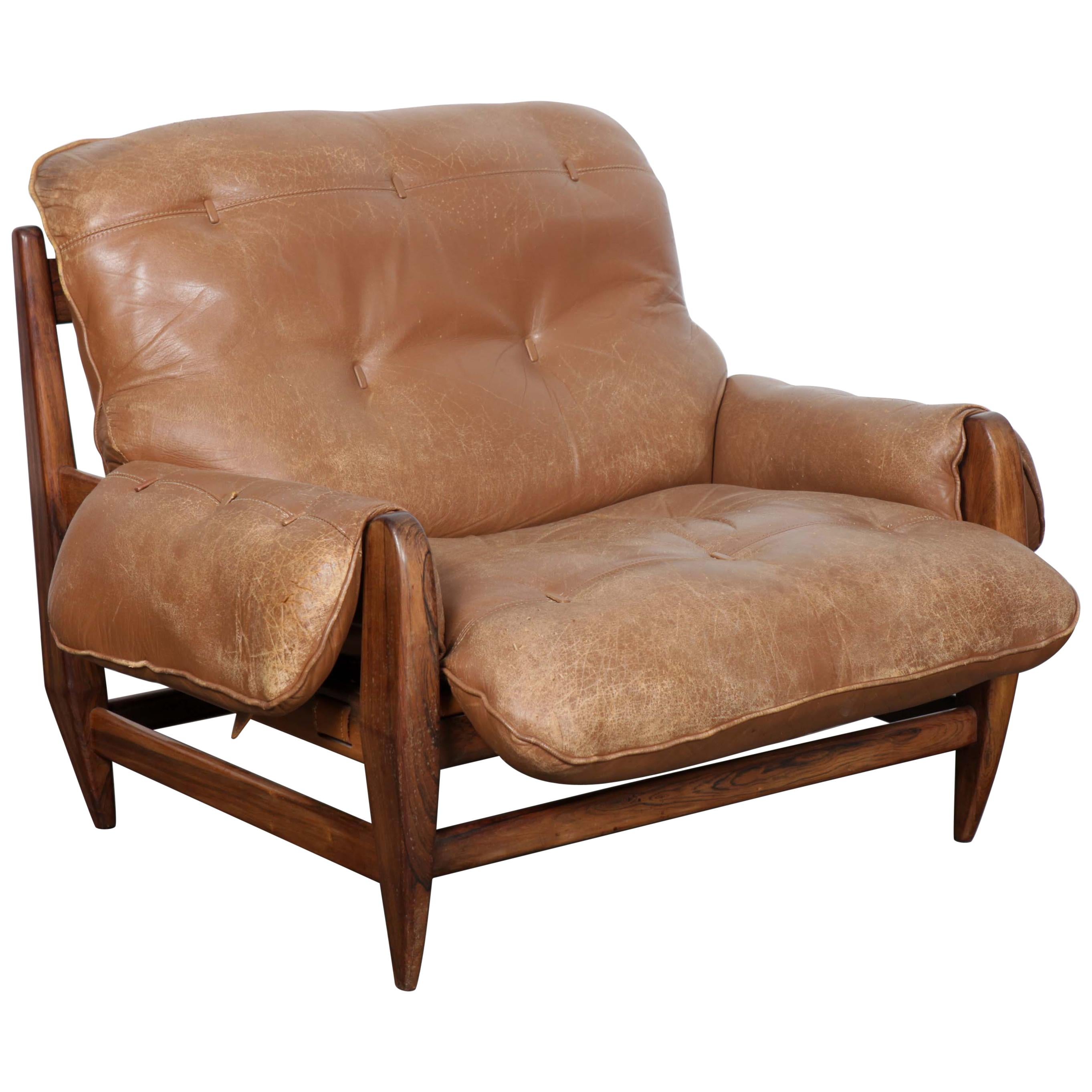 Jean Gillon Rosewood and Original Brown Leather Lounge Chair for Italma