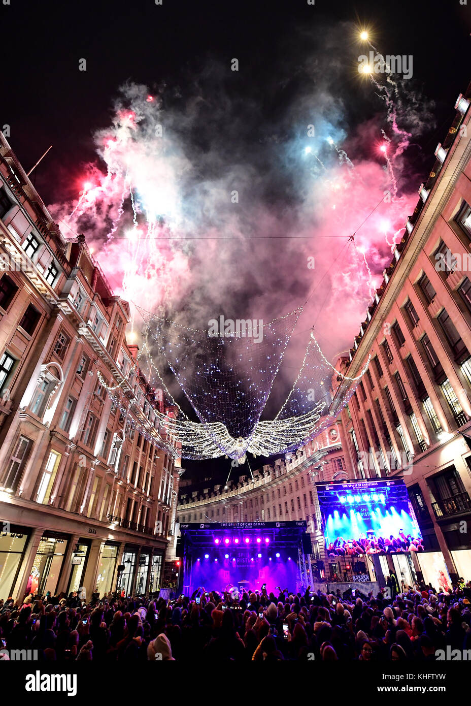 Fireworks as the 'Spirit of Christmas' display is switched on across