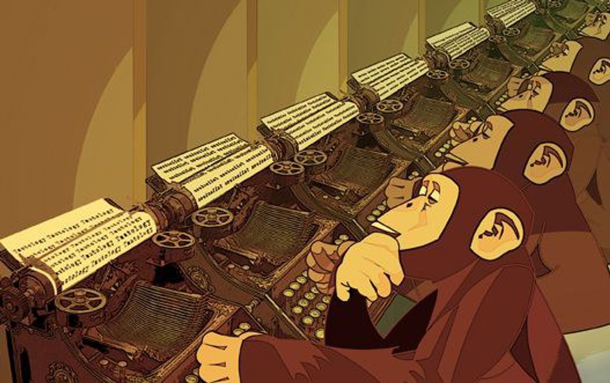 Monkey on Typewriter by Amanda CassinghamBardwell on Dribbble Typewriter Monkey But that hasn't stopped people from trying to bring this idea to life. The infinite monkey theorem states that a monkey hitting keys at random on a typewriter keyboard for an infinite amount of time will almost surely. Infinite monkey theorem is a theorem that states that an unlimited number of monkeys hitting random keys on typewriters for an infinite. Typewriter Monkey.