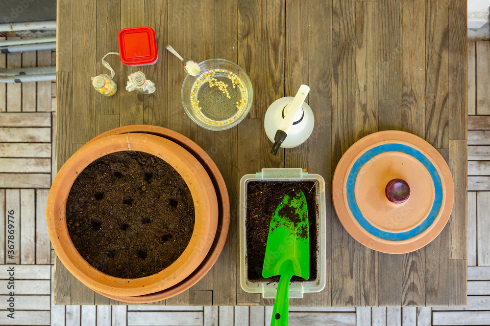 Seed germination equipment including green pepper seeds, earthen pot