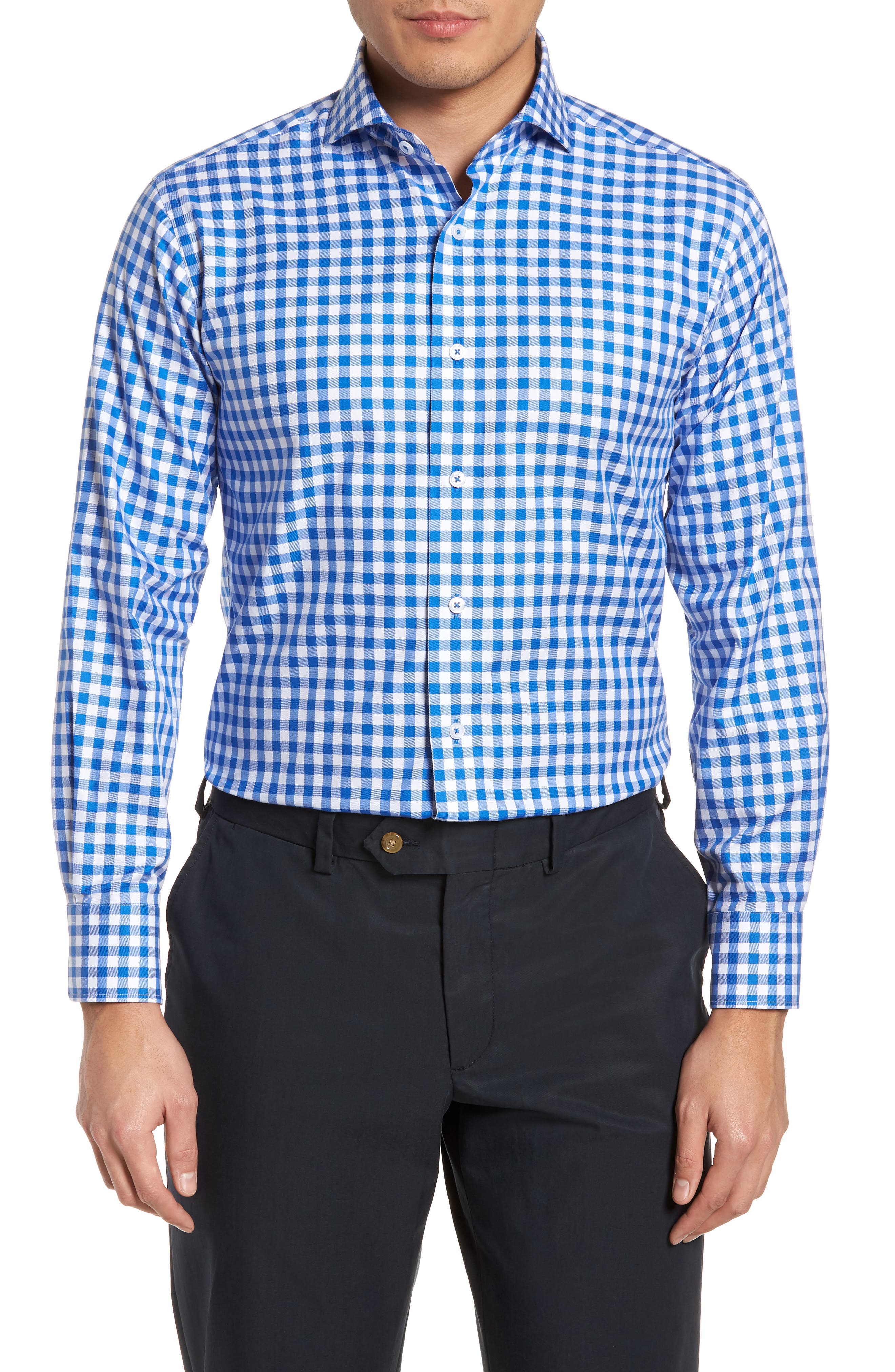 Lorenzo Uomo Trim Fit Gingham Dress Shirt Nordstrom